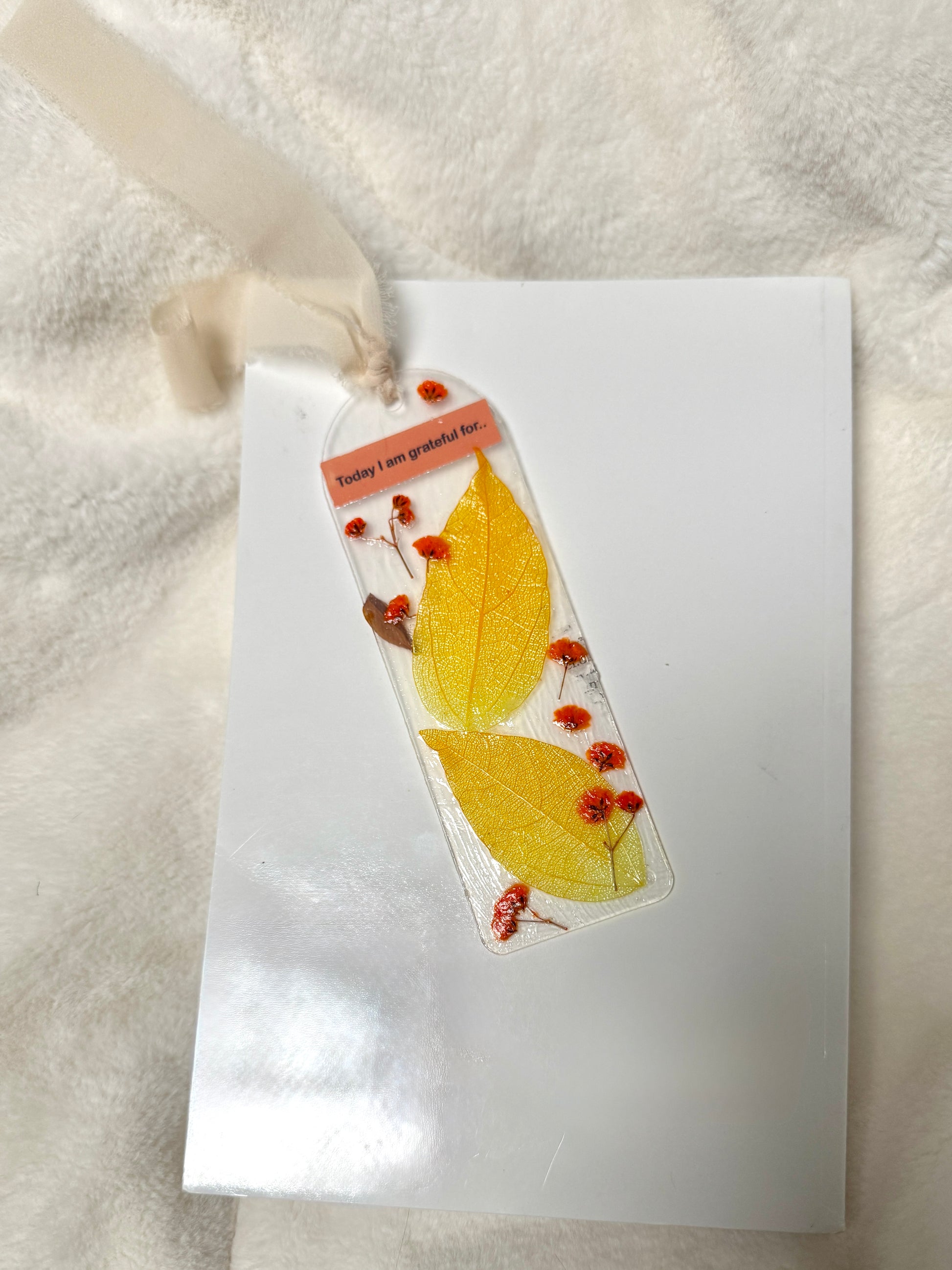 One of 10 handmade bookmarks in the theme of gratitude as a daily reminder for the importance of keeping our hearts centered on what we are grateful for and what we want to create more of from that place.