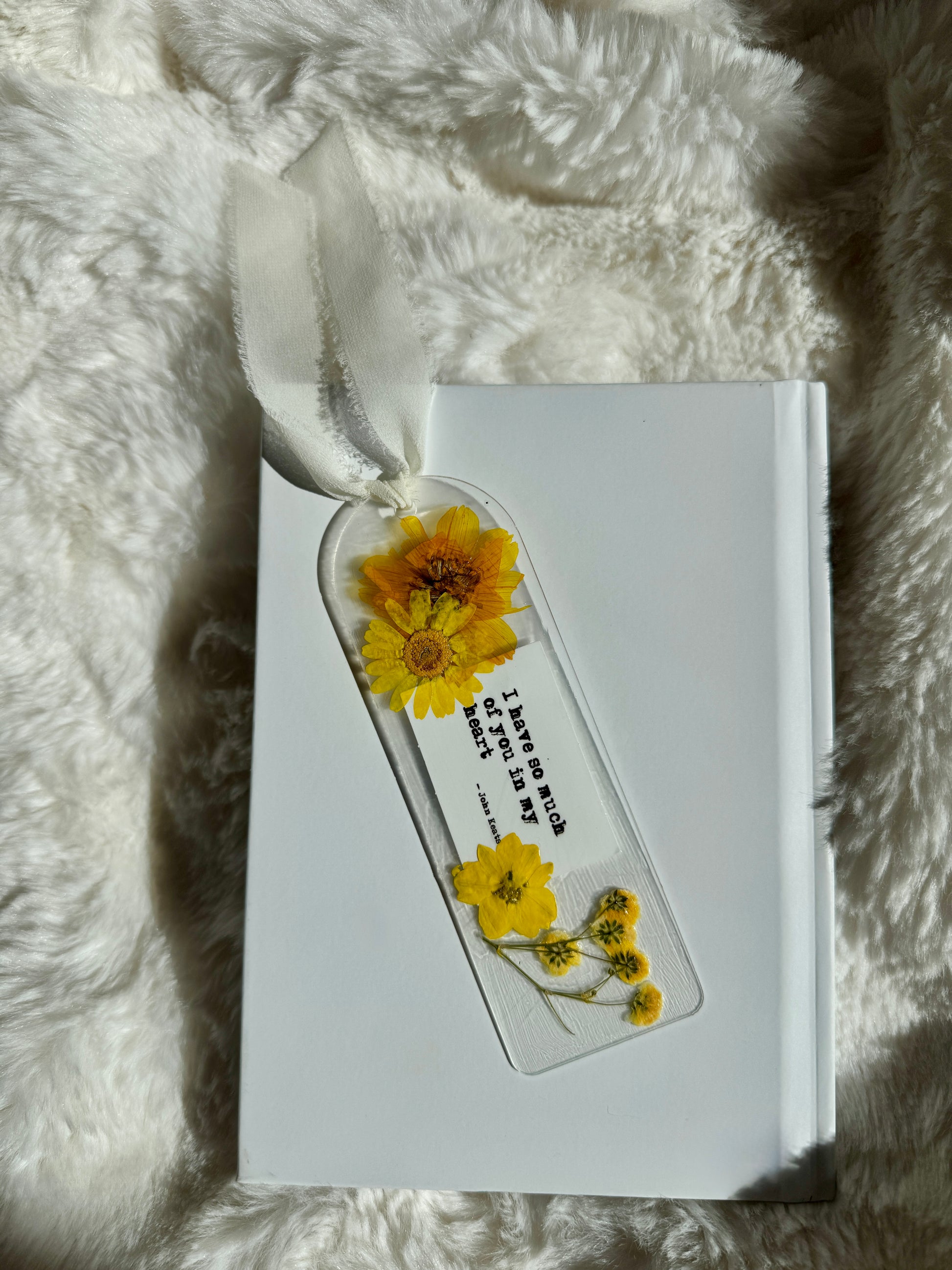 Some with floral designs, pressed flowers, and pressed leaves. Each with its own special quote. Finished with light weight ribbon.